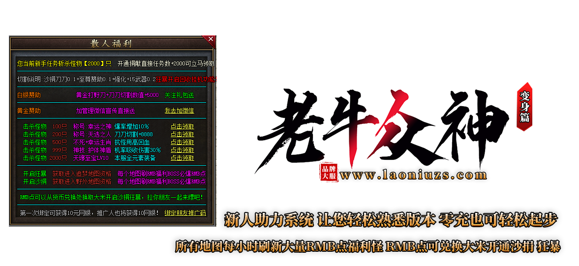变身玩法 白嫖沙捐 狂暴 至尊 所有图刷新RMB福利BOSS!